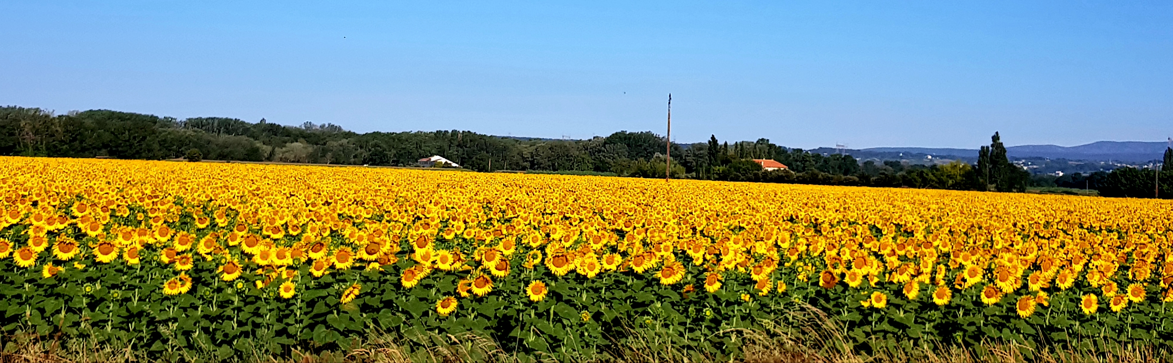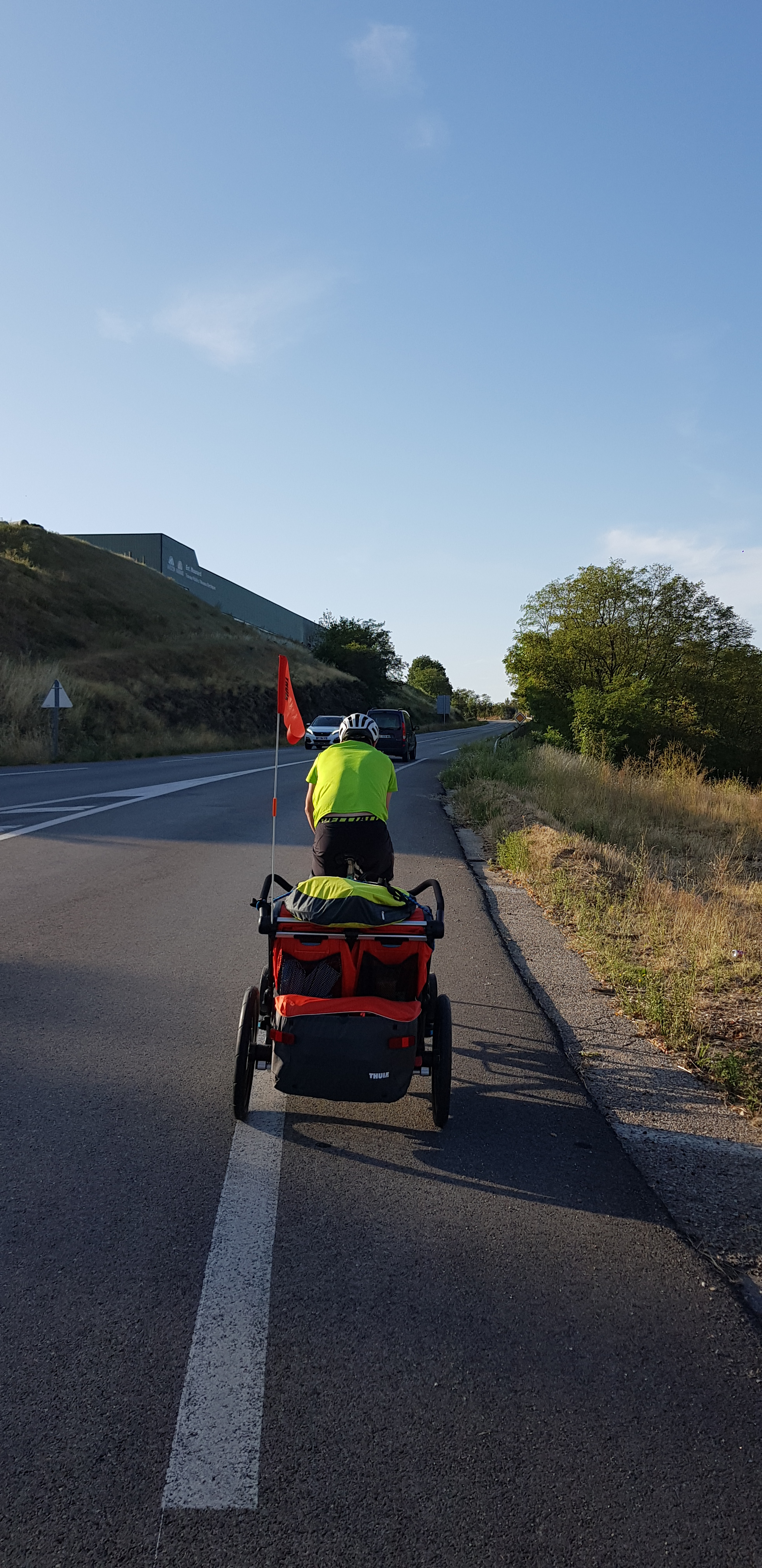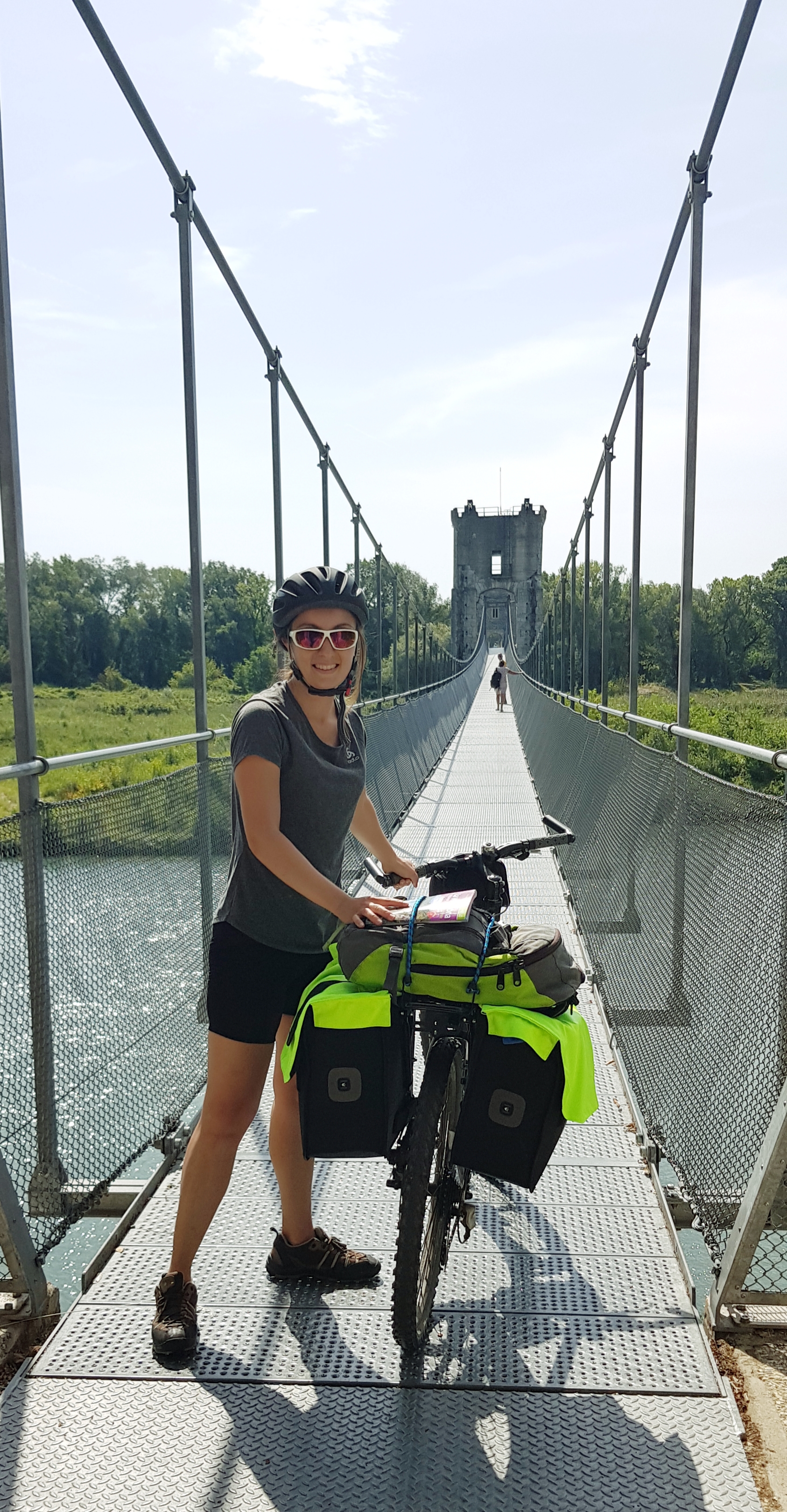 Nous traversons Avignon, puis nous nous retrouvons dans les vergers et les champs de tournesols. La différence de floraison est assez stupéfiante, lorsque nous prenons le temps d’y regarder ! Nous retrouvons Fred & Sandrine, avec leurs filles toujours aussi motivées, et nous partageons un bout de route ensemble. Des personnes, que tu ne connais pas et qui partagent les mêmes folies estivales, c’est tellement inattendu et agréable !