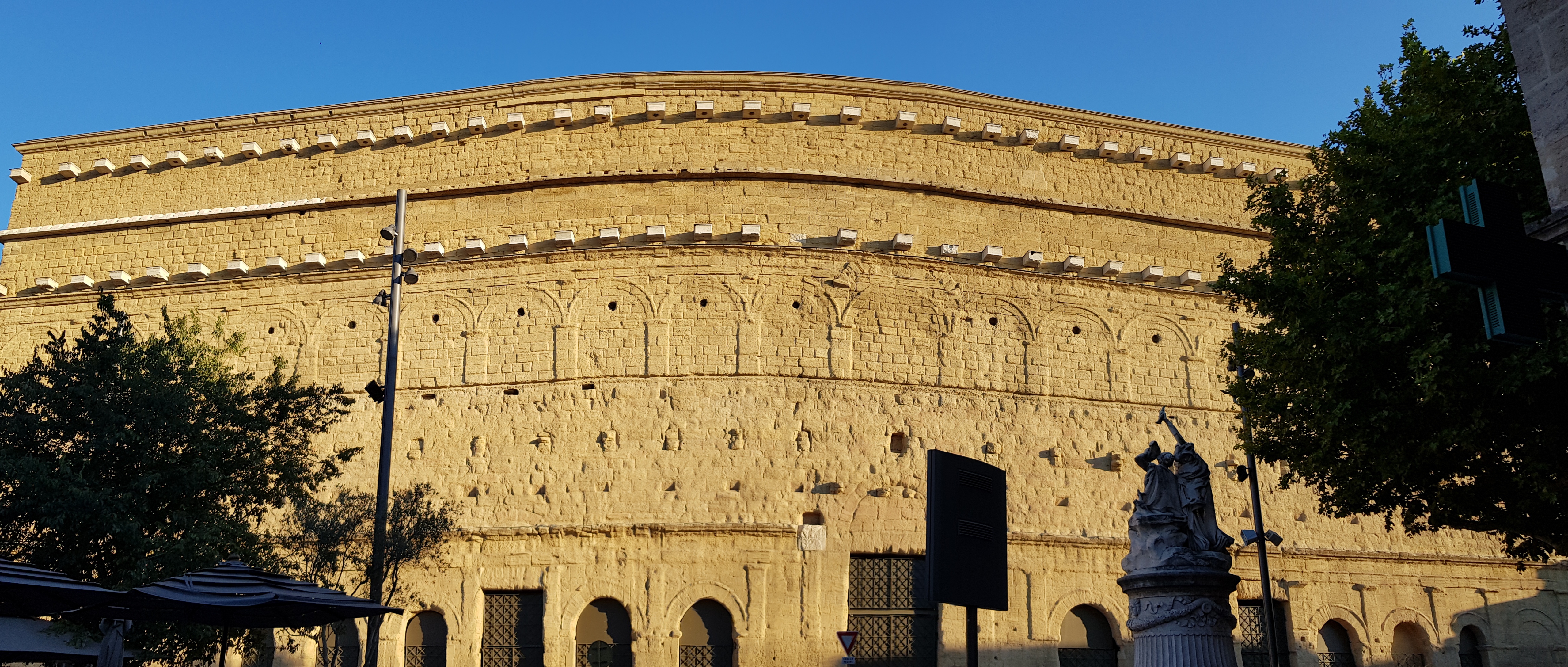 Nous arrivons sur Orange, où pour la seule fois de notre périple, nous dormons à l’hôtel St Jean. Situé dans un ancien relai de poste, en plein centre, nous avons pu garer nos vélos en toute sécurité. Parfaitement accueillit par les gérants, nous avons pris le temps de flâner à travers le théâtre antique, les ruelles bohèmes, et de déguster un excellent burger au restaurant « Le Théâtre » devant le concert inattendu de Mickaël Jones… Heureux hasard !