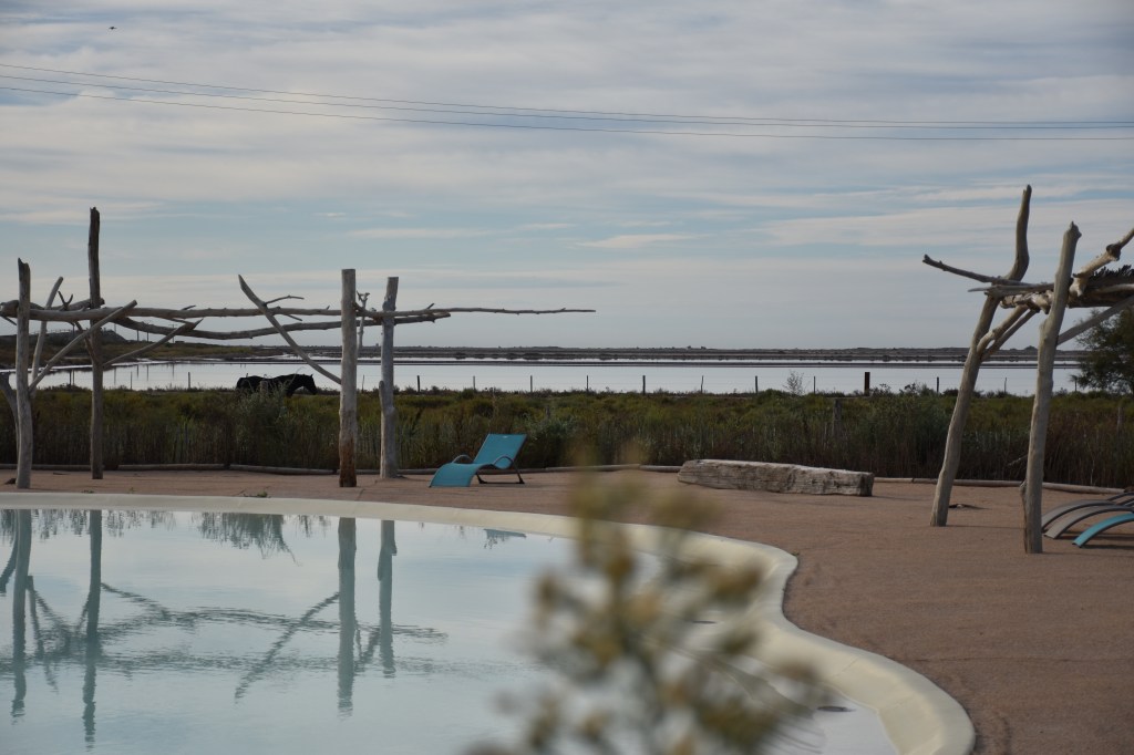 Les 7e, 8e et 9e jour : camping Les Bois Flottés, à Salin de Giraud. Camping récent et bien entretenu. Hugo, le propriétaire, fera tout pour vous rendre le séjour agréable. La présence de chevaux, donne la possibilité de faire des balades, dans une Camargue entourée de jolis salins rosés.