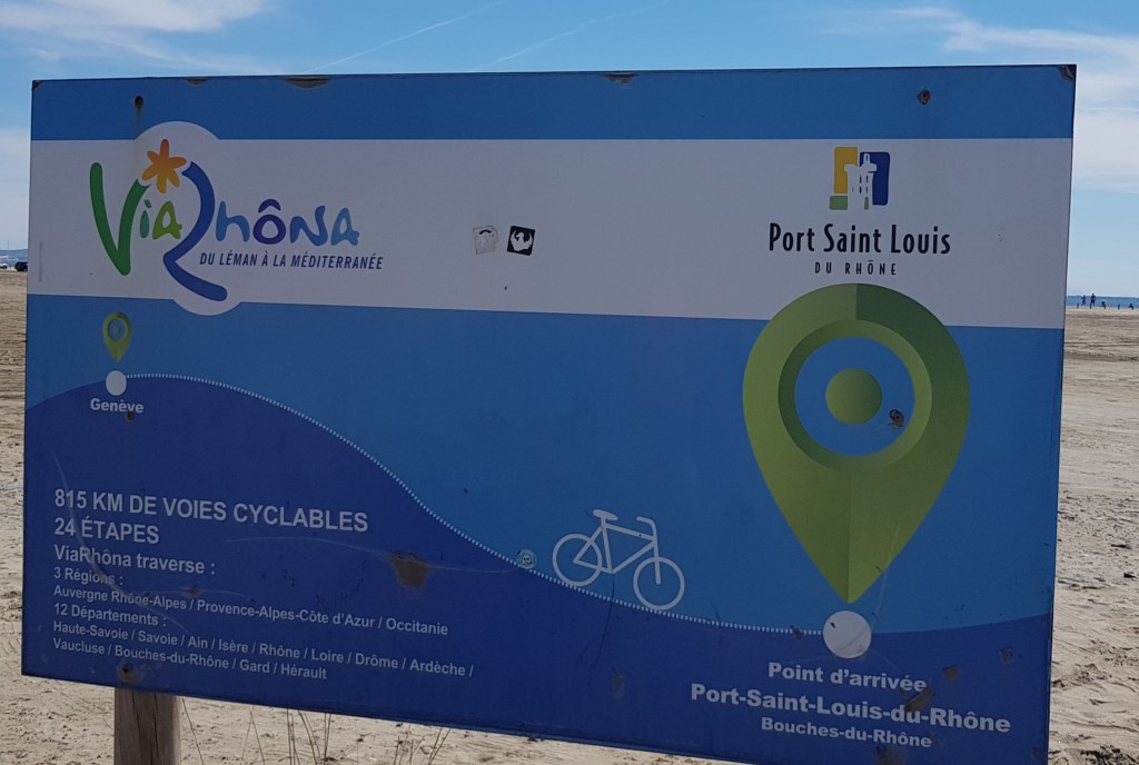 La ViaRhôna est un itinéraire cyclable de 815 km. Il part des rives du lac Léman, en Suisse, pour terminer sur les plages de la Méditerranée, à Port St Louis du Rhône, l’embouchure du Rhône.