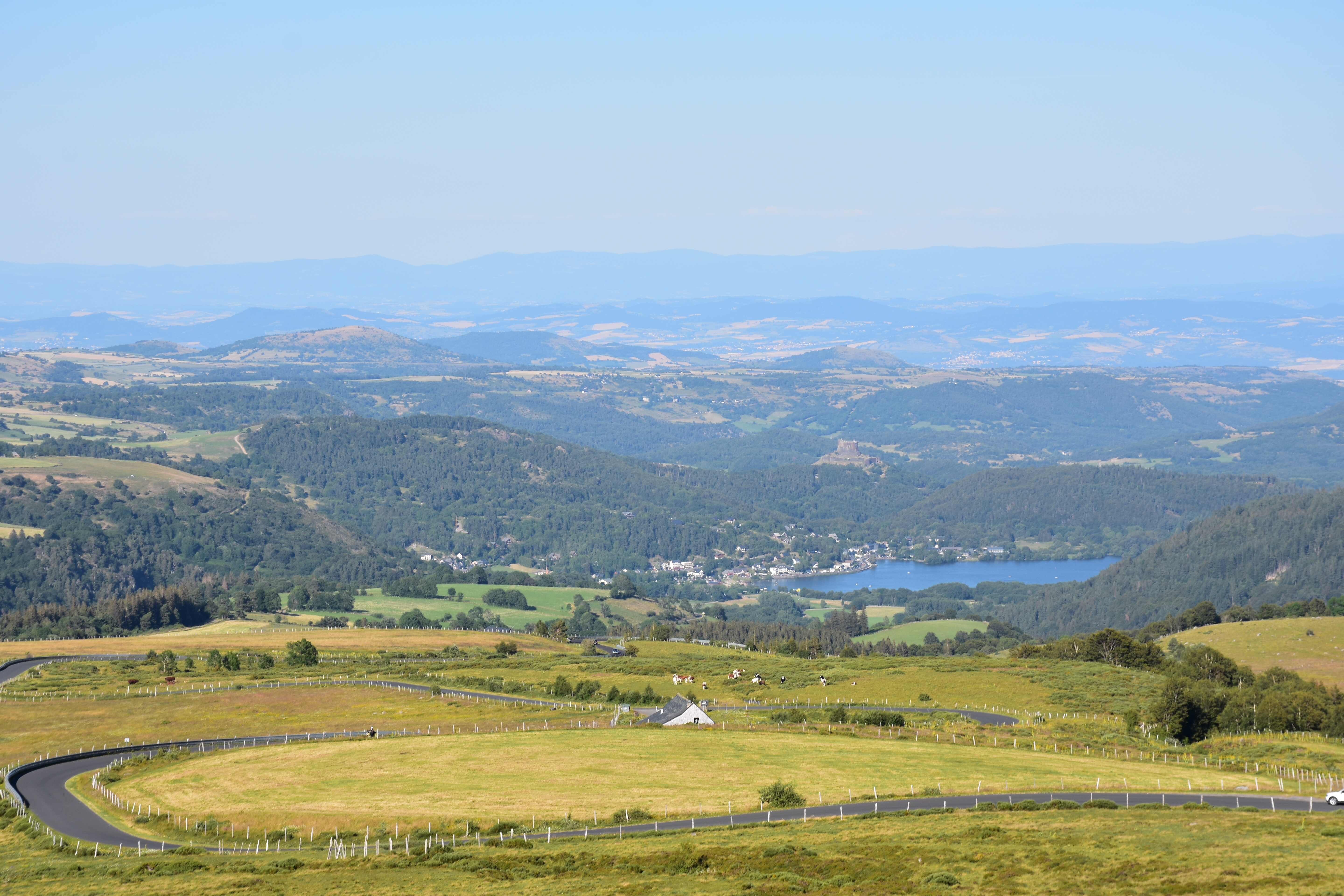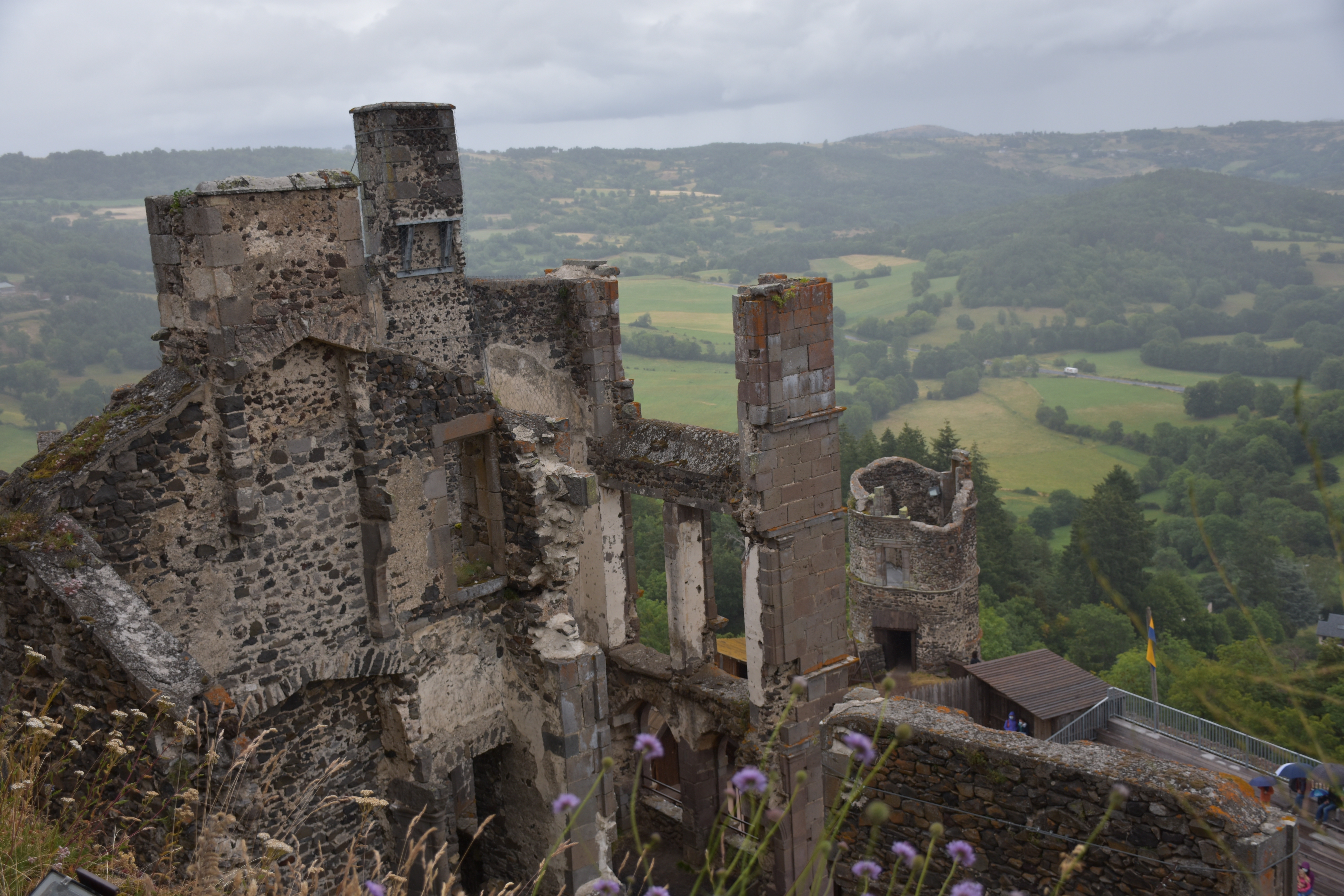 5e et dernier jour : Murol et son Château, visite inévitable, bâti sur son promontoire basaltique, avec un magnifique panorama sur la plaine… lorsqu’il ne pleut pas 🙄. Ce château du XIIe siècle, a résisté à plusieurs tentatives de siège, et si vous décidez de le visiter, vous aurez la chance d’être guidé par un dynamique et fervent villageois, qui vous racontera, durant 30 minutes, cette vie seigneuriale prospère et aisée.