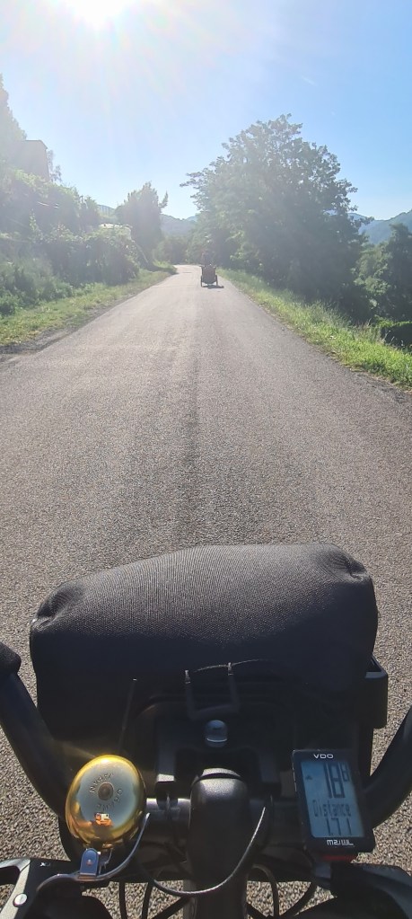 En ce 14 juillet, et étant enceinte de 7 mois, je ne pouvais plus gravir grand chose, alors pour garder, un peu de pratique sportive, nous avons décidé de faire la Dolce Via.